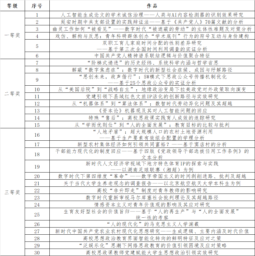 为营造高热度科创育人氛围,有效加强科创育人体系建设,马克思主义学院组织开展第二届“青马杯”学生哲学社会科学学术作品竞赛活动。经学生申报、资格审查、院内外评委函评、学院党委会审议,现将评选结果予以公示: